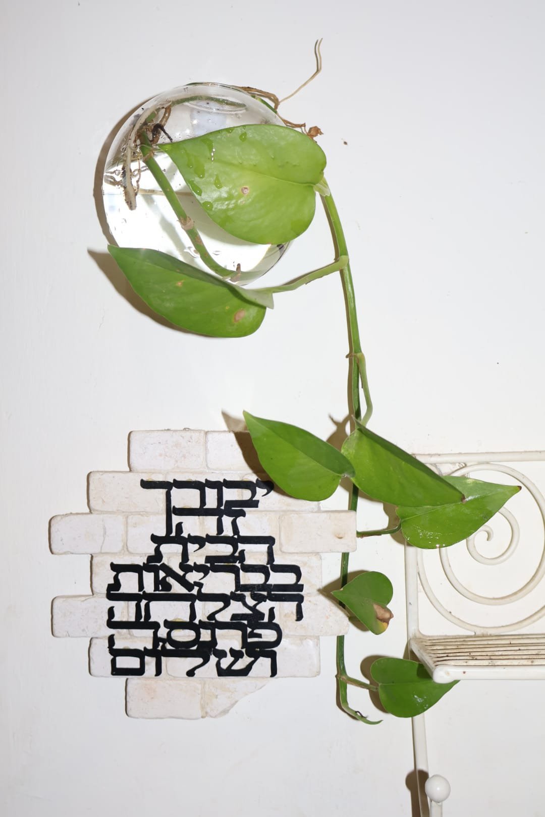 A clear glass vase you can hang on the wall. Great for growing plant cuttings and adds a fresh, natural touch to your space.
